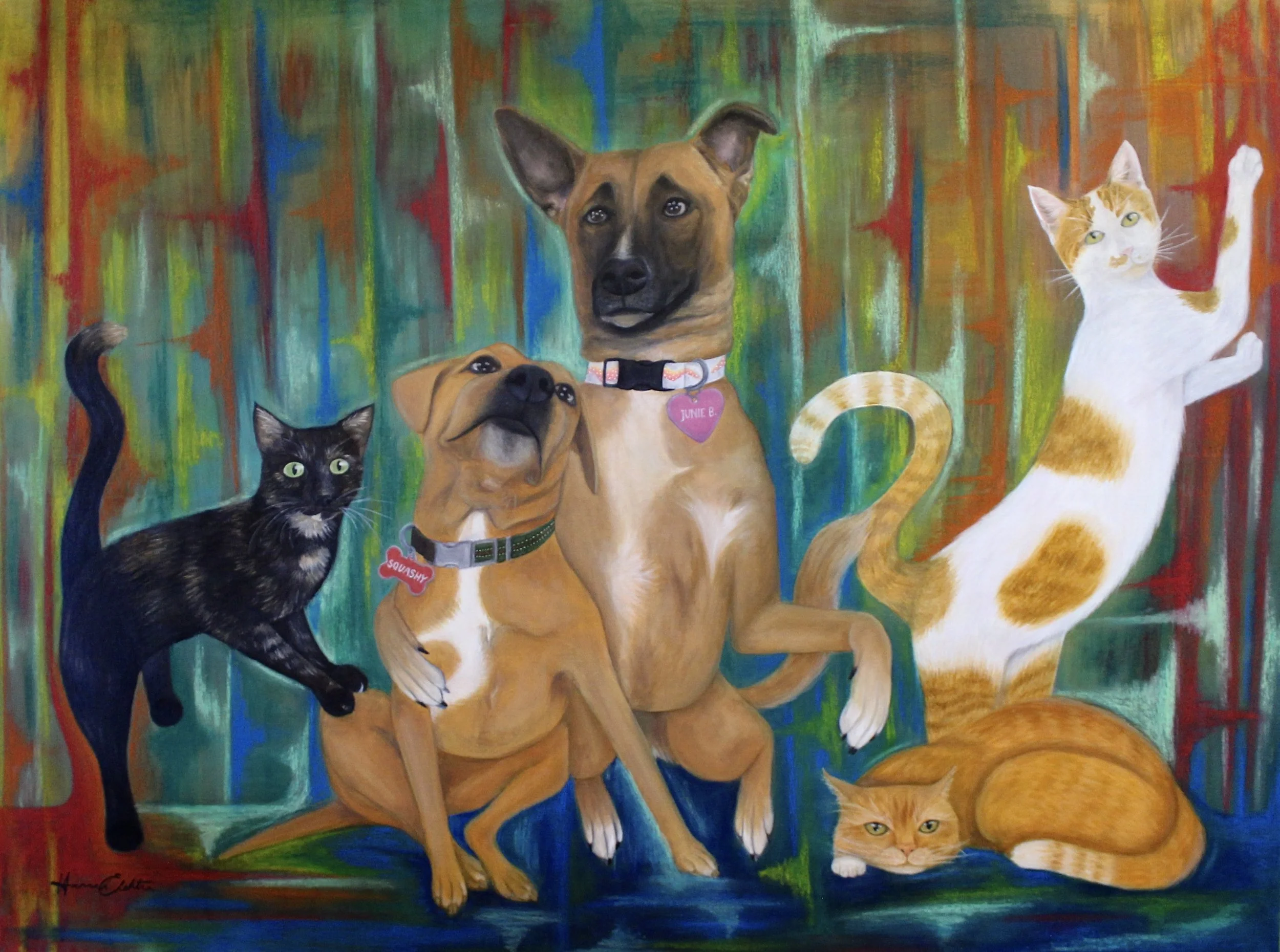 The Hendricks is a 5-in-1 pet portrait featuring my favorite family of creatures: Sister, Squashy, Junie B., Marc, and Butters Hendrick.